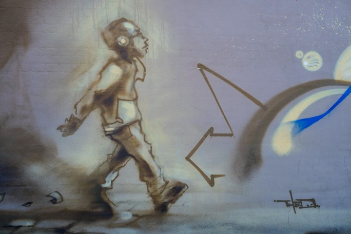 What interests me about it, and why I like to photograph it, is both its ephemeral nature and how it forms part of the texture of the world around us. Traditional two dimensional artwork is generally discrete, it has defined borders after which the world it conveys abruptly ends. Grafitti on the other hand does not, its world is our world. This makes it interesting photographically because you can both photograph the artwork itself, or the environment its in, or some combination of the two without the feeling that you’re simply creating a facsimile of someone else’s work.