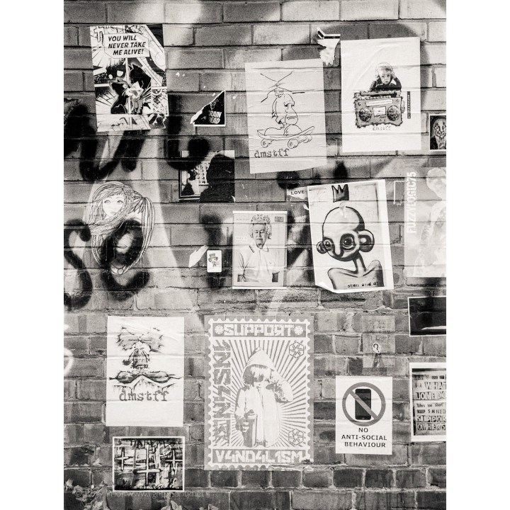 Today I want to share some images I took recently in Manchester’s wonderful Northern Quarter; a trendy, bohemian enclave that’s in the early stages of gentrification – so it’s still a nice mix of the rundown and the new and all the interesting people haven’t been priced out yet. It also has an excellent street art scene with a nice mix of posters, sticker art and painted pieces including some big murals.